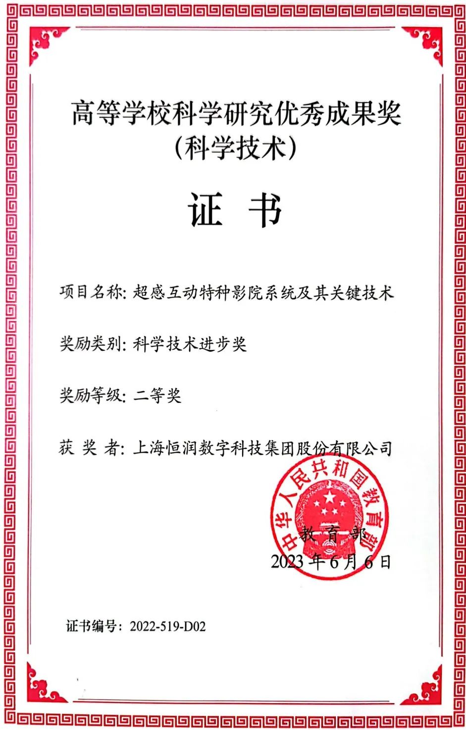 “超感互动特种影院系统及其关键技术”突破性创造“多投影仪投影内容实时拼接融合播放方法” “多画面立体投影装置与显示方法” “群体自然交互技术” “电动伺服超感装置”等关键技术,将超感互动特种影院体验效果提升到一个新阶段。项目成果消除了运动时所出现的立体影像漂移、抖动等现象,大大缩短了飞行影院运动响应时间,在模拟飞翔运动时,客户的感觉更加明显,超感体验更强,实现了360度全景沉浸式飞翔观影效果。